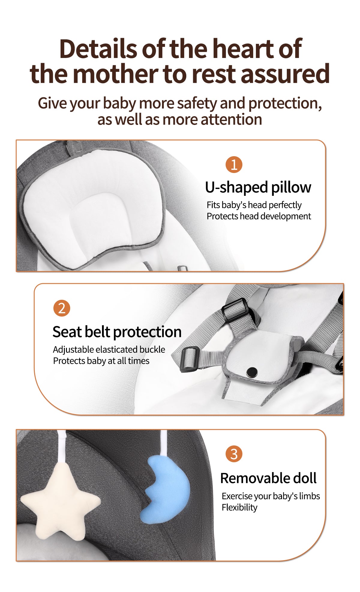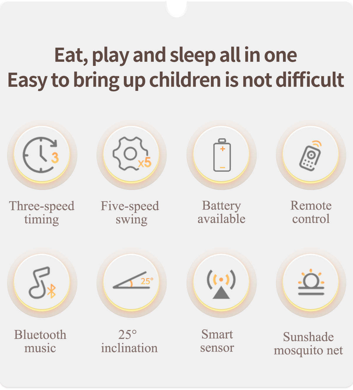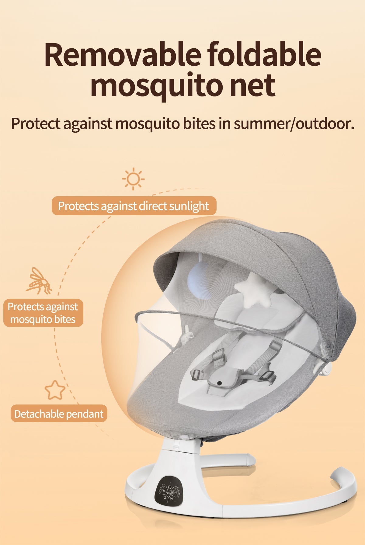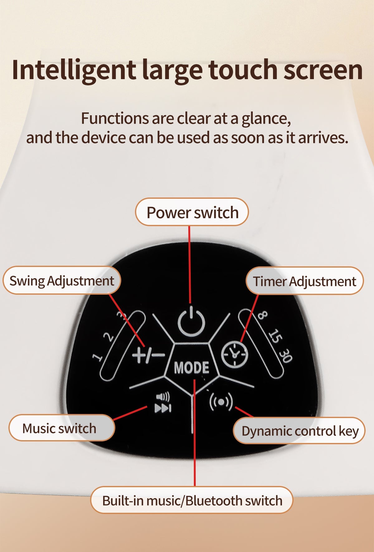 Introducing the Baby Swing for Infants, designed with Bluetooth connectivity and a touch screen/remote control function for your convenience. With 5 different speeds and 3 seat positions, your baby will enjoy customized comfort and stimulation. Plus, 10 soothing music options and a 5 point harness belt for ultimate safety.