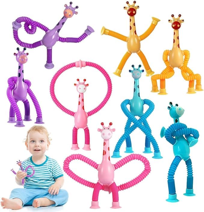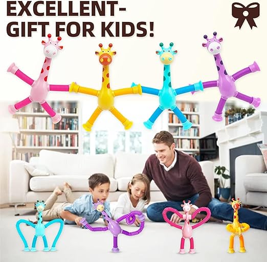 This Telescopic Suction Cup Giraffe Toy features an LED-lit telescopic pipe that extends and retracts smoothly. The shape-changing stretch tube adds a tactile dimension, encouraging fine motor skill development and sensory exploration. The secure suction cup allows easy attachment to various surfaces, making it ideal for interactive play in different settings. This innovative toy combines visual stimulation with hands-on engagement for an enriching experience.